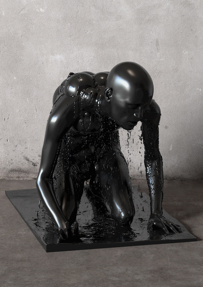来自韩国的数字艺术家Kyuin Shim近期带来了一系列令人不安的雕塑,翻译成英文名称叫做‘cry cry’ and ‘black black’,此作品拥有人类的肢体,却有一部分身体像被高温融化掉一样,通体的黑色更加令人心有余悸,包括之前他所创作的异形态的作品,总让人感叹他的脑洞究竟有多大。专注于数字艺术的Kyuin Shim使用3D软件渲染出雕塑的模型,精确的完成了他的作品,像“异界人”一样给大家带来了新鲜和刺激感,也为传统雕塑注入了新的活力!