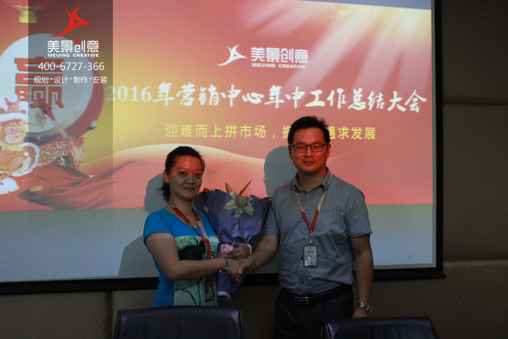 会议上,有鲜花、有掌声,氛围相当地愉快轻松。在会议的最后,公司董事长夏星星先生对于营销中心上半年的工作表示了充分的肯定。下半年,公司会加强企业管理,引进更多优秀的人才,努力实现企业目标和人才目标。“即使前面的路很曲折,但是我相信未来一直都是光明的!”夏总说到。
