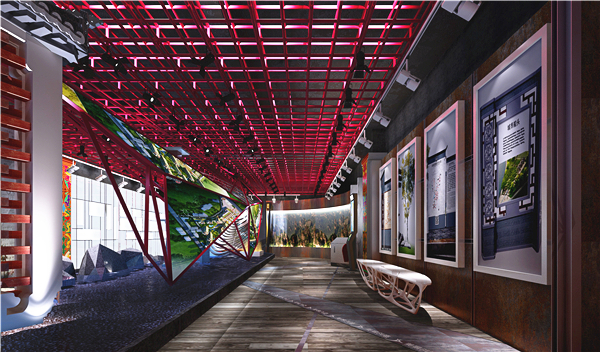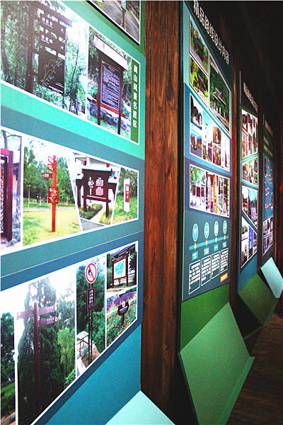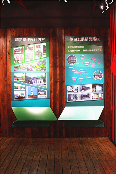 旅游景区展示区以景区标识牌的形式主要展示了全域旅游和精品路线两大部分的内容,标识牌共四部分。