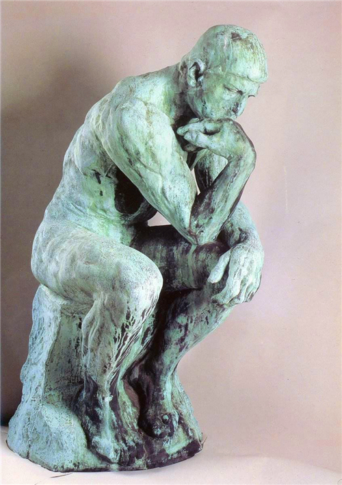 《思想者》作者罗丹,创作于1880~1900年,青铜材质,198*129.5*134cm,原为《地狱之门》(取材于但丁的《神曲》)组塑的一部分,后翻铸成铜像。