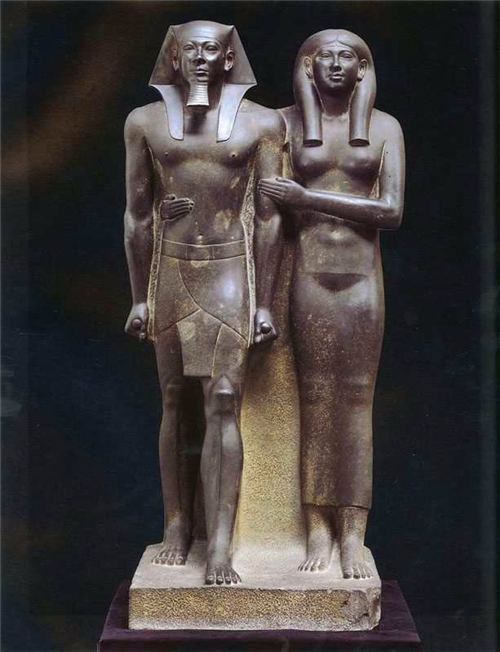 《门考拉夫妇立像》约创作于公元前2600年,高约142cm,闪绿色粘板岩雕刻,现收藏于美国波士顿博物馆。