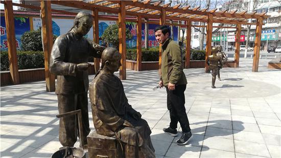 近日,周口涌现出了一批街头雕塑,这组雕塑与常见的街头雕塑不太一样,并带来一场怀旧风,十分接地气,勾起了我们记忆深处的童年时光, 四组雕塑体现的是“爆米花”“打烧饼”“剪发匠”等生活百态。
