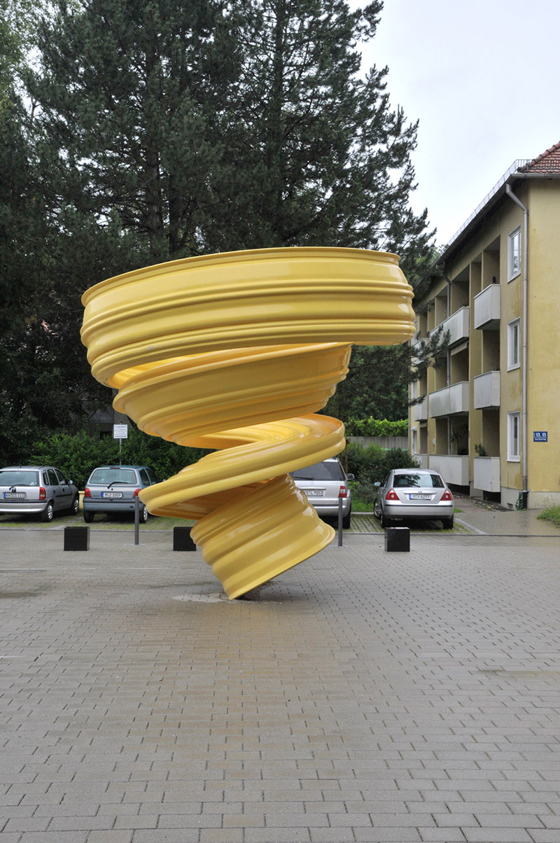 回升看似描述了一个欢喜的动态循环,雕塑被放置在德国慕尼黑南部地区,周围首要是德国巴洛克式风格的修建。雕塑首要使用了两个曲折的部件以及putto的身影。在流畅的结构中,刻画了一个“张狂”的夸大形状,而且制定了一个更为合理的战胜巨大形体所发生重力的施工结构。调皮的愿望,自在的型态创造一种特殊的能量感和振奋感。