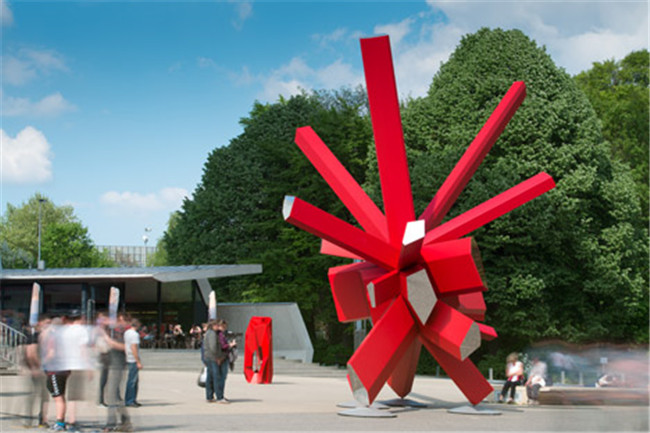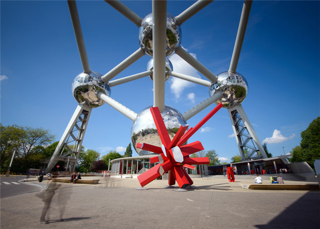 法国巴黎规划师Arik Levy创造了一个色彩亮堂的红钢雕塑,名为RockGrowth。著作坐落于布鲁塞尔的巨型金属雕塑原子塔之下,(原子塔是工程师André Waterkeyn和建筑师André and Jean Polak在1958年的布鲁塞尔世界博览会上所规划的雕塑著作),闪亮的不锈钢球体下方出现的一个艳丽的赤色雕塑吸引着参观者的眼球。RockGrowth是由几个几许块组成的,包含各种长度和宽度,从中央衔接点宣布的块体足有9米高,耸立在空中,外表都涂有红漆,两头是研磨镜面,与它背面的雕塑的闪亮外表相照应,几个块别离指向四个不同的方向以坚持雕塑的平衡。