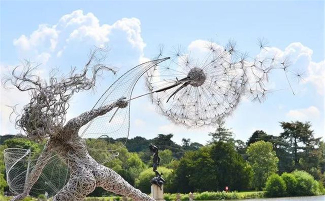 英国国家地标性构思雕像,戏剧性的仙女雕塑和跳舞的蒲公英。