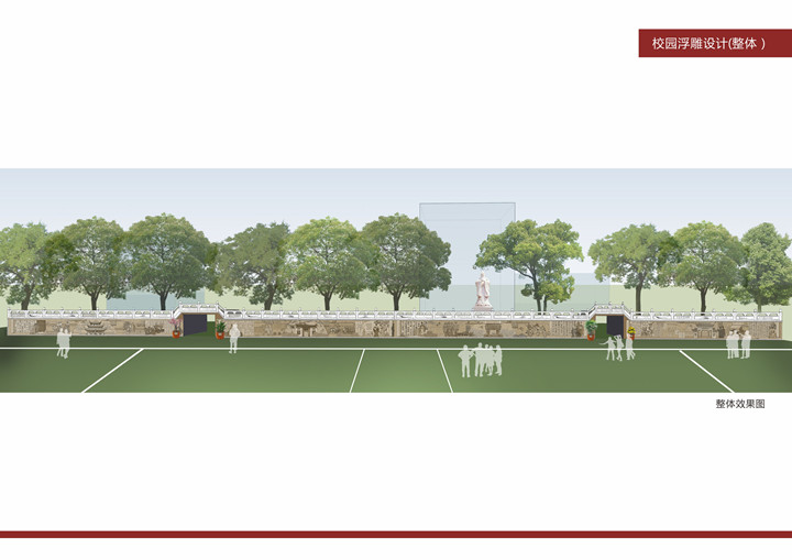 校园文化浮雕墙又称“校园精神”,因为它在内容上能体现学校精神、教学精神、学习精神、班级精神和校园人际关系。有一位哲学家曾经说过,“对一个学生来说真正有价值的是他的环境。”校园浮雕墙,不仅美化校园,校园雕塑也与所有校园的景观融为一体,是历史、传统、文明和社会的价值的沉淀。所以在校园文化浮雕墙的设计中,需要用各种手法来描述自身的故事。通过解读校园浮雕文化墙,学生不仅能够掌握集体环境意识,还能够从浮雕作品中体会到特定文明的设计思想、态度、情感和价值观念。
