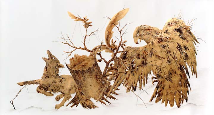 艺术家Sarah A. Smith使用金箔的独特的媒介来创建与运动和纹理爆若隐若现,动态绘图。名为金图纸,她收集的大型工程通常描绘动物,山水,从大自然中令人惊叹的,金属般的漩涡,形状等元素。