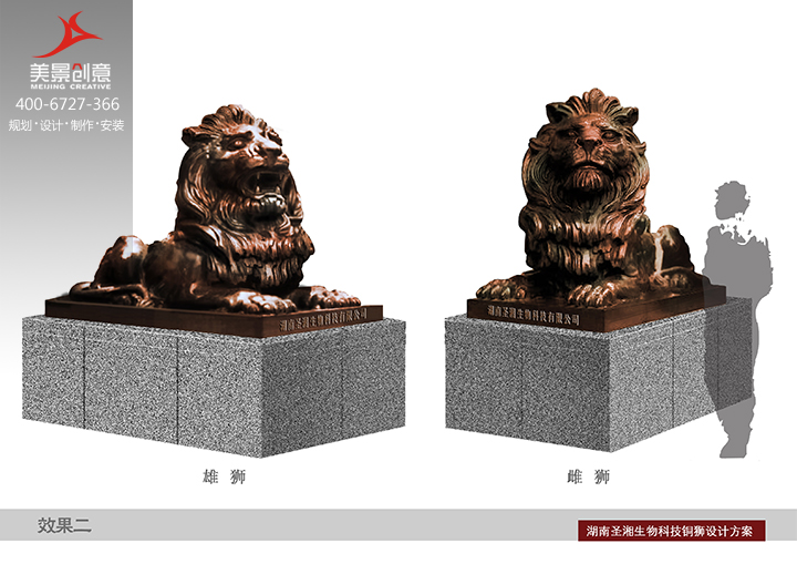 长沙圣湘生物科技有限公司铜狮雕塑-铜像雕塑,铜狮子全体为纯黄铜精铸而成。为镇宅化煞、旺权助运之宝器。铜狮的主要作用为化煞挡灾,一般将之放在桌子上、窗户台、书架或者迎着门的矮柜上。铜为金,可以克制木的刑克,遇窗户对面可见大树者,宜以一对铜狮子化解。在室内之祸害、绝命位置,可放置此铜狮子,以减轻其对宅主运势的破坏力,保佑全家平安。一雄一雌放在门口, 是家族兴旺的标志。 “双狮护门”谐音“双狮富门”。在民间有这样的说法:“摸摸狮子头,万事不发愁”。