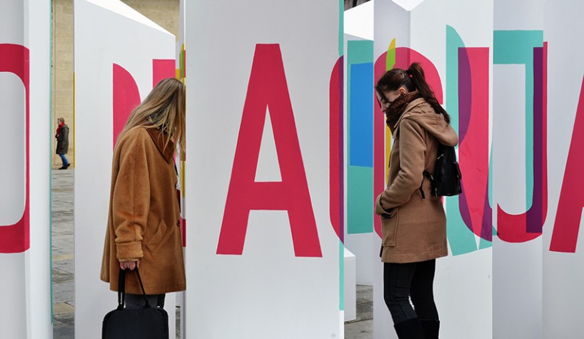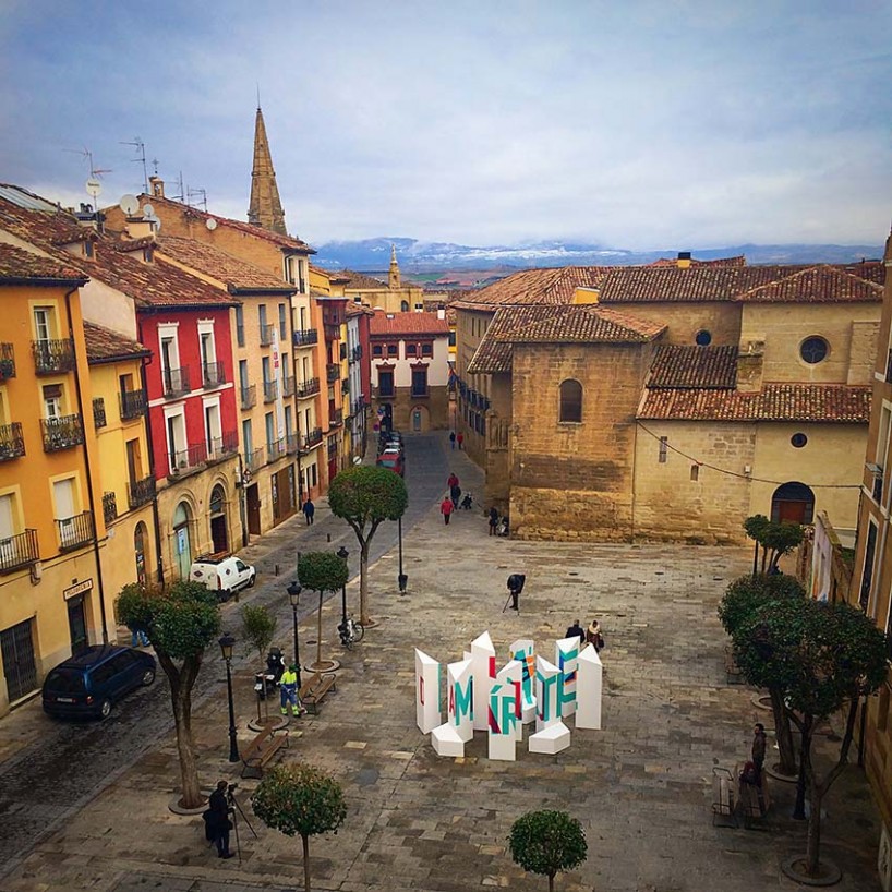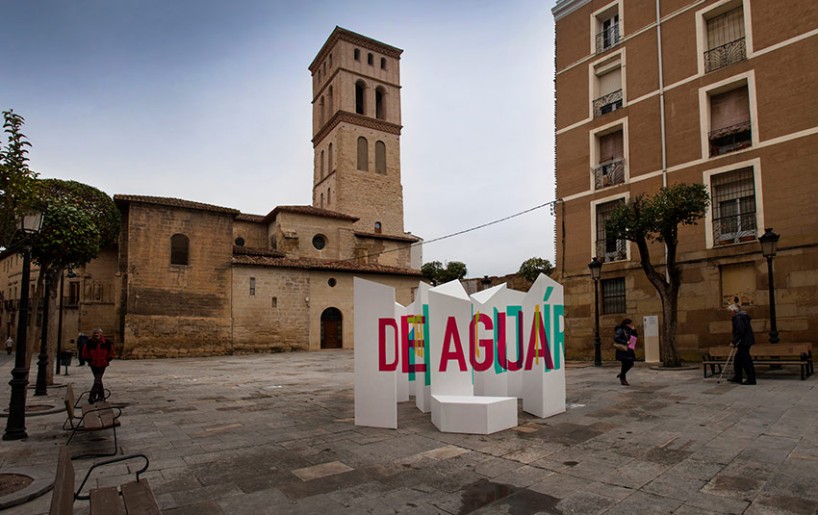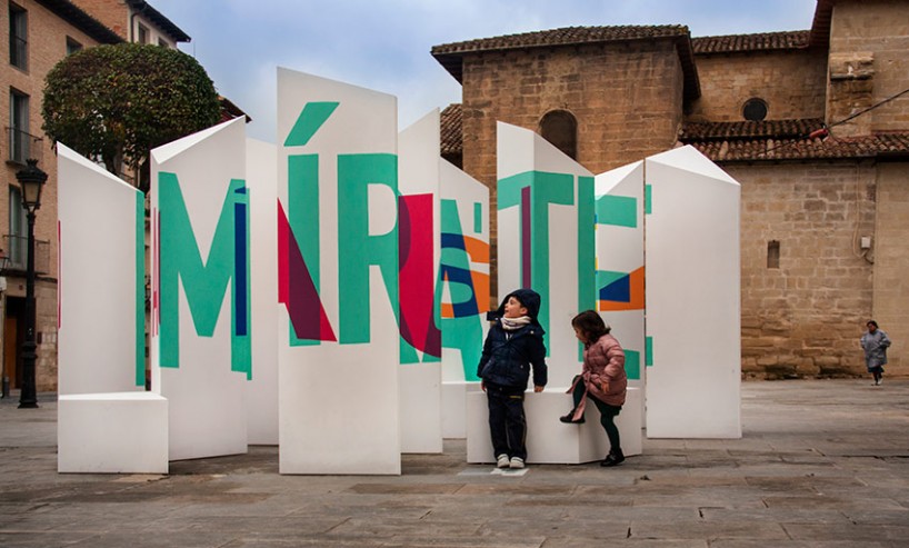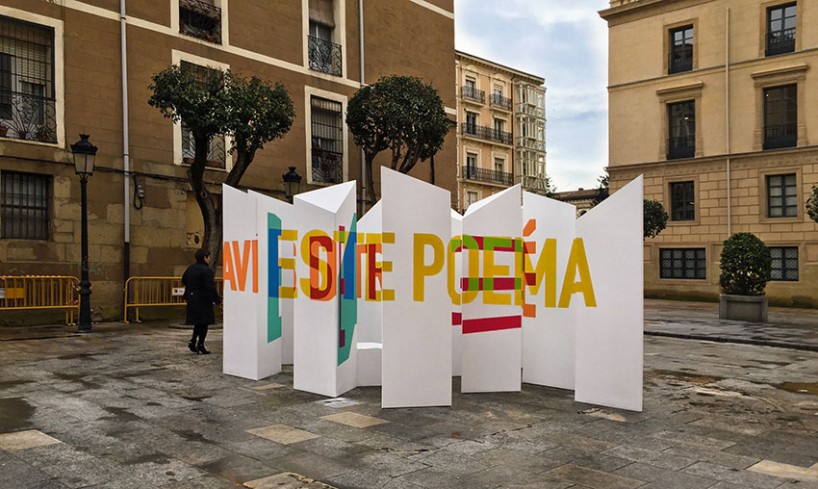 boa mistura日前创作了一个透视的本地化的字体作品,该装置上写的句子摘自enrique cabezón的一首诗,内容是“mírate a través de este poema de agua”,该装置作为concéntric展的一部分,该展览是一个建筑和设计展。要想将这句话阅读完整,游客们必须绕着白色的柱子走一圈,在4个角落上作短暂的停留,以便看清楚柱子上多彩的文字。cabezón诗里的这句话可以译成“通过这首水一样灵动的诗来审视自己”,是从诗集《no busques lágrimas en el ojo del muerto》里第六首诗里摘录的。“现在我们对手写字体非常着迷,我们认为这是最有效的沟通方式,不需要任何阐述,一个单词简单又直接,写什么就是什么。当你看到一个有积极意义的单词,或优美的鼓舞人心的短语的时候,你的心情会更好,然后你的好心情会感染到周围的事物。”