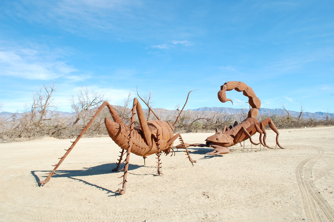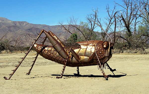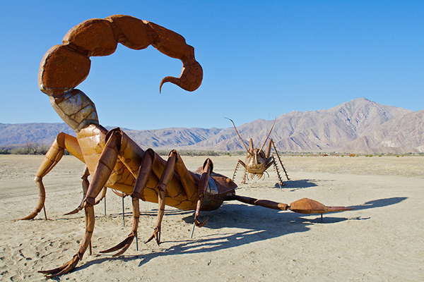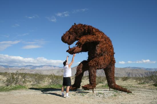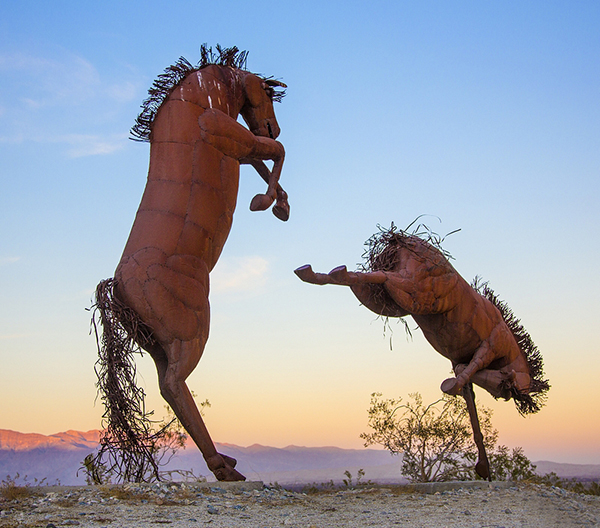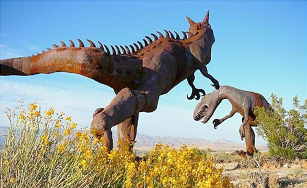 在美国加利福尼亚州的博雷戈(Anzo-Borrego)沙漠里,一些真实大小的大型金属的史前动物雕塑迅速走红,这些雕塑的作者是原籍墨西哥,现居美国加州的艺术家Ricardo Breceda。很早之前,他创建金属雕塑是因为他的女儿,在侏罗纪公园系列电影相继上映之后,他便已经创造了他的金属动物王国。沙漠中,来自亿万年前的恐龙们自由站立,身披略带锈色的金属外衣,仿佛随时都能活起来,形成了一个超现实版的侏罗纪动物园。在此之后,他也成为国内外著名的雕塑家和设计师,他最大的收藏品当属一座“中国龙”形象的雕塑,坐落于Borrego Spring的荒漠中,虽然这些雕塑的规模巨大,但Ricardo Breceda并没有减少丝毫对其细节的雕刻,亲手精雕细琢,吸引了众多游客参观。