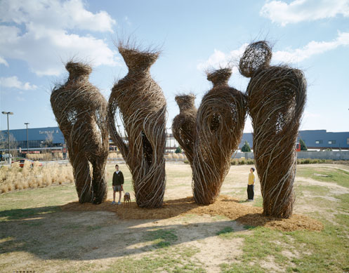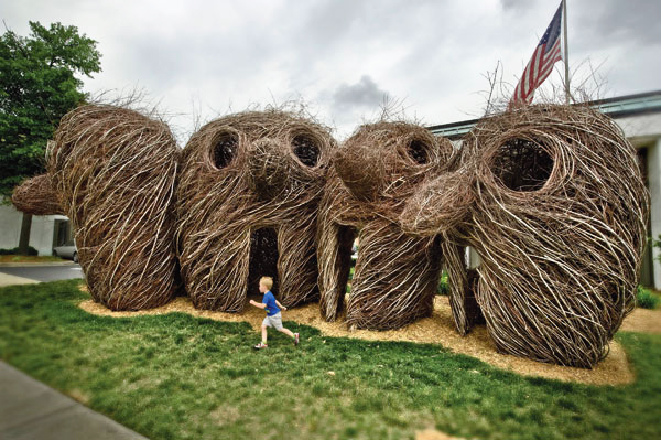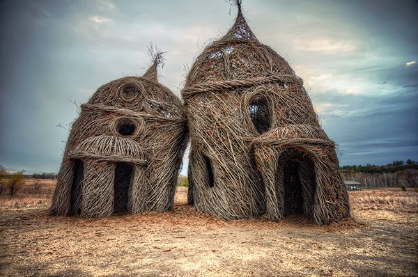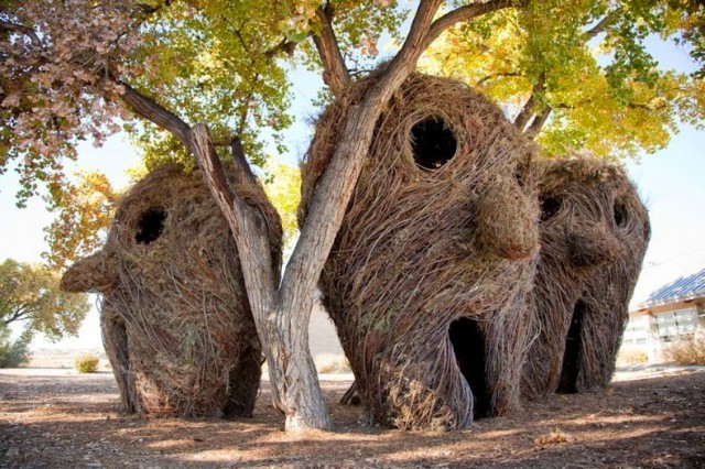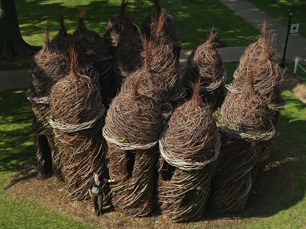 在大自然中,我们所熟知的雕塑材料包括石头,木头,粘土,沙子等等,但我们很少看到人们用细嫩的树枝来做雕塑的,但一位来自美国的艺术家用毕生的时间,给树枝带来了一场艺术的革命,以此证明大自然中能做雕塑的不是只有那些坚硬的东西。雕塑家Patrick Dougherty如今已经69岁了,在1967年他获得了爱荷华大学的医学和健康管理学士及硕士学位,却在1969年回到北卡罗莱纳大学学习艺术史和雕塑,他凭借自己对大自然的热爱和自己的木工手艺,Patrick开始更多的了解建筑的原始技术,并开始尝试嫩树枝作为建筑材料,结果是令人惊奇的有趣的雕塑。1982年她的第一部作品就被列入北卡罗来纳艺术家双年展,在接下来的时间里,Patrick不断的探究新的雕塑形式,大约创造了200多件大型的树枝雕塑和建筑,成为艺术史上不可磨灭的一笔。