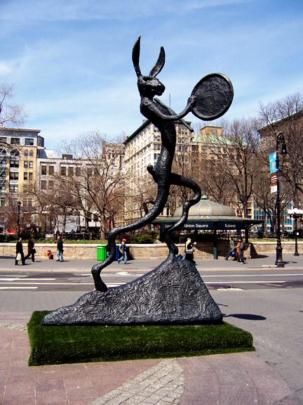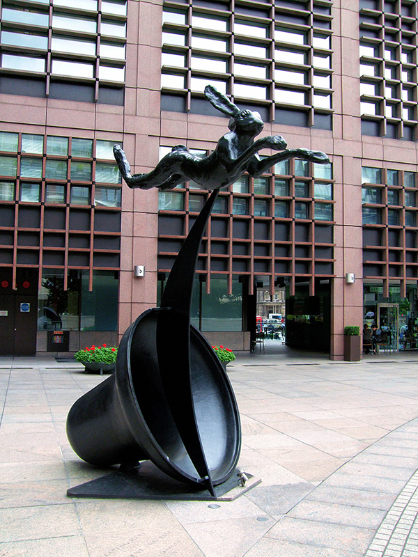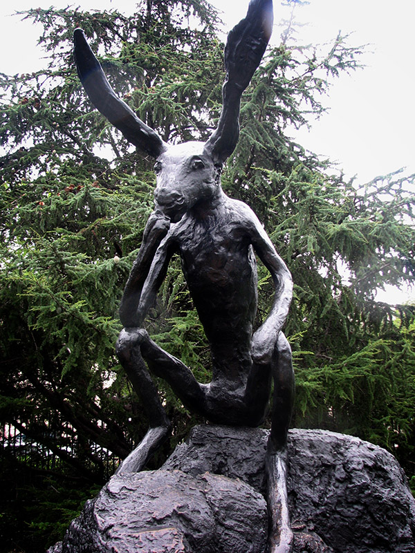 艺术家Barry Flanagan是一位极富想象力的雕塑家,他于1941年出生于北威尔士普雷斯塔廷,曾在伯明翰大学学习建筑艺术和工艺品,之后在伦敦的圣马丁艺术学院取得了雕塑的文凭。尽管Flanagan本身是一个比较随性的人,但他的作品仍被认为是激进的,独立的,并且在国际上享有很高的知名度。他最出名的作品是一些永久性安装的公共雕塑,比如在伦敦,曼哈顿,贝尔等地安装的巨型青铜野兔,还有在维多利亚的广场酒店安装的跨越式野兔,说到这里,相信大家已经看出,Flanagan的公共作品多以兔子等动物们为主要题材,但它们又不是严格意义上的动物,而是被拟人化了的动物雕塑,艺术家凭借动物的姿态来象征着人类的生活,雕塑了早期的传统雕塑,并且以有幽默和反讽的态度树立了自己的艺术丰碑,Barry Flanagan在最早期的时候就曾参加威尼斯艺术双年展,一直以来都倍受艺术界的认可,对于Barry Flanagan来说,艺术就是认真的玩儿!