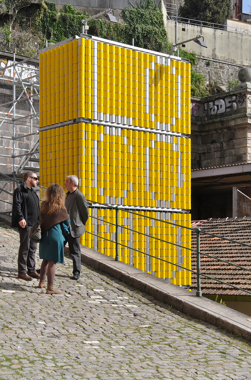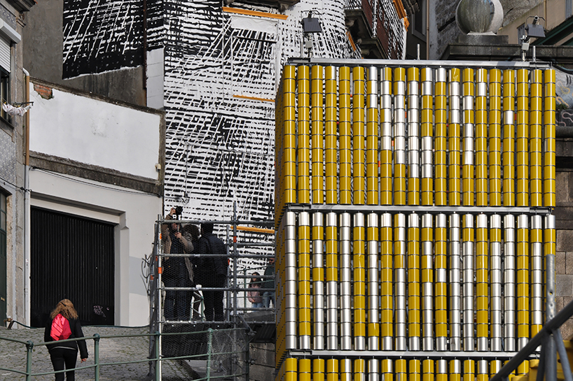 路人可以亲手操纵这件装置作品,制作团队也正是借助这种方式来赋予作品休闲娱乐的功能。该装置作品的最明显的元素是垂直,在设计时既要赋予其休闲互动的功能,又要满足每天往来于这里通勤者们的需求。《Vira-Lata》很容易地做到了这两点,许多往来于这里的人们都认同这一点。作品的外部被设计成一个通讯塔的形状,与车站内部的出发或者到站牌十分相似。在该装置作品的背后有一条连接车站和街道的公共阶梯。参观者可以行走在这段阶梯上与作品展开积极的互动。2300个罐头