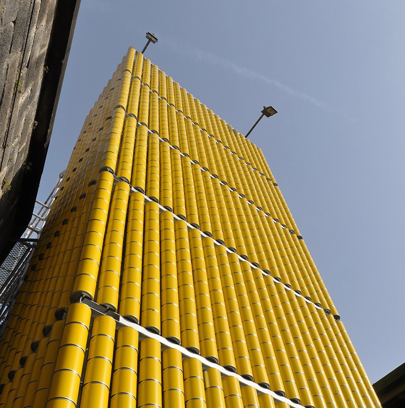 ,你可以转动其中任意一个来传达你想要表达的信息或者创造专属于你的图案,就像置身于一块巨大的像素屏幕中。目前该装置作品已经向公众开放。