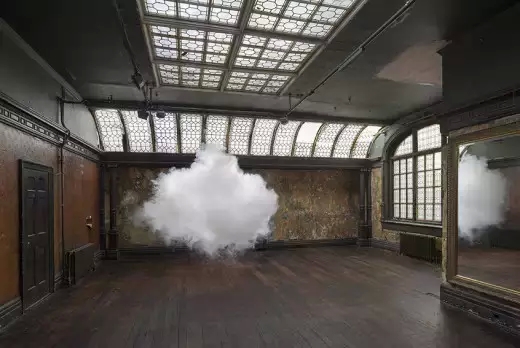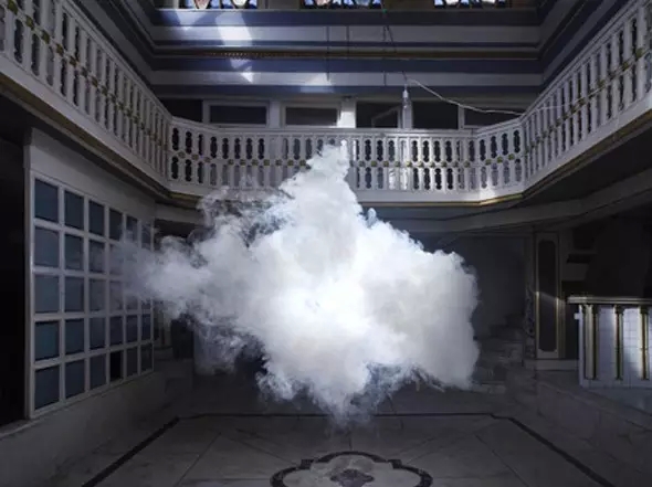 这一套极其精确的方案必须保证温度、湿度与光照都恰到好处。当一切准备就绪,斯米尔德打开机器,将房间里空气中的水蒸气凝聚起来,再辅以特殊的灯光照明,营造出转瞬即逝却伸手可触的云朵。云朵维持的时间相当短暂,只有30秒,必须马上拍摄下来,让人体会什么是真正的“浮云”。