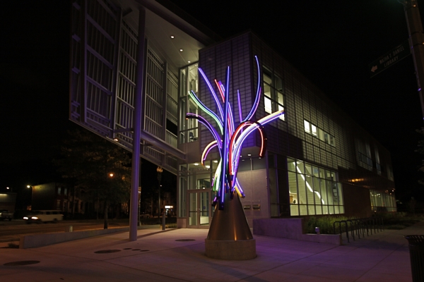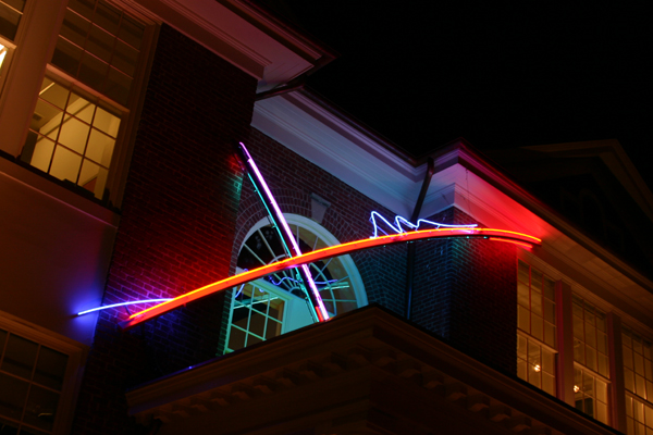 在过去30年的时间里,craig kraft的艺术创作早已获得国家的认可。他的主要作品是大型的霓虹灯雕塑,除了独立的雕塑之外,还有附属在建筑之上的符号般的抽象作品,弯曲的玻璃管连接着变压器,弯曲夹具,电压控制器和五颜六色的霓虹灯,通电之后,本来就造型优美的雕塑在夜里散发出丰富又迷人的霓虹灯光,令人赞叹。craig kraft拥有麦迪逊大学的艺术学士和硕士学位,并且有110多个雕塑在美国各地展出或永久安装,能够精确的操纵数字光线来捕捉自己艺术视野内的世界,因此他成为灯光艺术家极少数非常受人尊敬的艺术家之一。