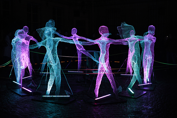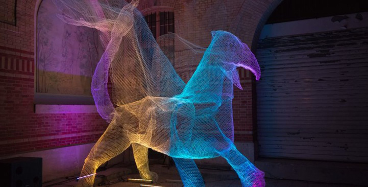 法国艺术家Cédric Verdure是一个自学成才的多学科综合艺术家,主要以金属丝线的灯光雕塑而闻名,自1999年以来他开始探索绘画,从2009年开始,光就变成了艺术家的创作必不可少的一部分,他以金属丝网精心创造各种人物或者动物,再设计搭配精美的七彩霓虹灯光,复杂的镂空坚硬在夜晚总是显得倚丽,使整个作品呈现出奇特的氛围,即梦幻又诡异,作品的网络精致清晰,即使在白天没有灯光的陪衬,也能欣赏到另外一种美。Cédric Verdure的作品已经在法国巴黎的“白夜巴黎”(Nuit Blanche in Paris)展出过多次,每次的展出都让人们惊叹不已,雕塑艺术能让大家爱上这个世界,这个宇宙。