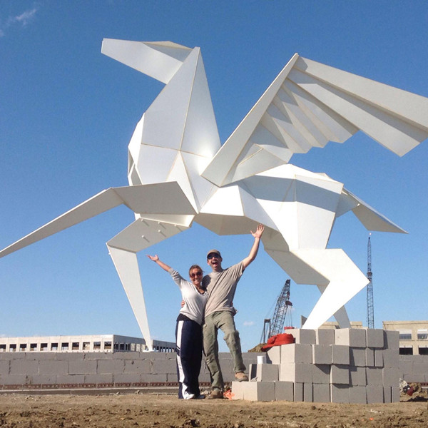 艺术家Kevin Box说: 作为一个版画家和平面设计师 ,我开始了自己的职业生涯,折纸,纸架,皱巴巴的形态和抽象的创新是我工作的主题,一开始每一个作品都只用一张白纸,在通过直接用纸,失蜡铸造等方法持续工作了几年之后,我开始用青铜,铝和不锈钢等金属材料创作“折纸”的形态,(铸铜容易塑造细节,铝因其质量轻适合做小作品,不锈钢强度大,能经得起户外和时间的考验。)每一个作品都是手工锻造而成的,像纸张的外观市面,独一无二。