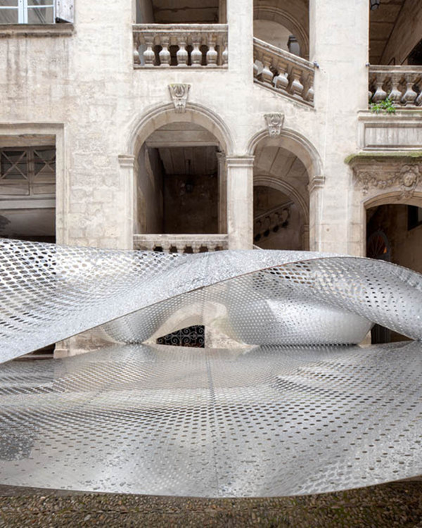 FAKT是来自德国柏林和瑞士苏黎世的一个建筑工作室,目前,他在金属加工公司Karl Dieringer及澳洲金属商AMAG提供的赞助下,在瑞士的6街Trésoriersde la交易所庭院中设计了一个金属“云”的超大型装置作品,名为“The Cloudscape”。