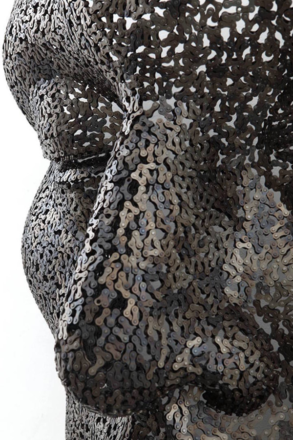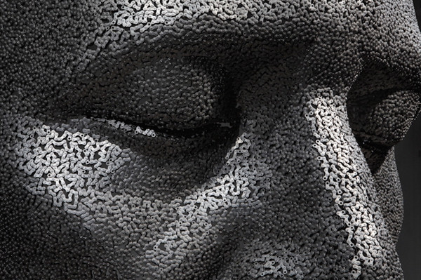 韩国艺术家Young-Deok Seo的自行车链条雕塑曾经让人们为之动容,近日来,他又带来了最新的作品,一组巨大的人面雕塑,这组雕塑是他几年中沉思系列的一部分,巨大的空心人脸面具表情平静,寒冷而刚硬的铁链条更加突出了人像的情绪,也更加逼真了。