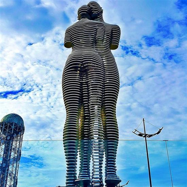 格鲁吉亚小镇巴统(Batumi)有着两尊8米高的移动雕像,“Man and Woman”,这是由格鲁吉亚雕塑家塔玛拉(Tamara Kvesitadze)根据一本1937年的爱情悲剧小说“Ali and Nino”设计建造的,没有人知道这部小说的作者是谁,但这个凄惨的爱情故事已经在全世界范围内被翻译成30多种语言。
