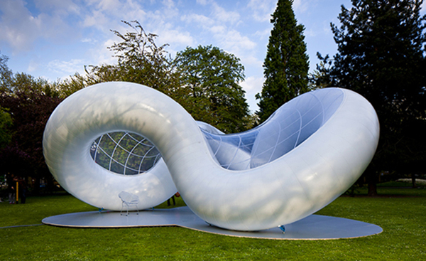 建筑团队AZC(Atelier Zündel Cristea)在伦敦博物馆的花园中心建立了一座以“和平”为主题的展馆,展馆约有4米高,占地62平方米,轻巧耐用的膨胀性材料建造成一个扭曲的平衡的形态,非常独特,同时它也是一个令人心动的互动性空间,人们可以在空间内外站立或休息,孩子们更能体会到其中的乐趣。展馆名为“和平”,这意味着没有战争,只有和谐、宁静、善良和快乐等感受,建筑师特意将其设计为一个完美精确的几何对称型雕塑,令人惊叹。