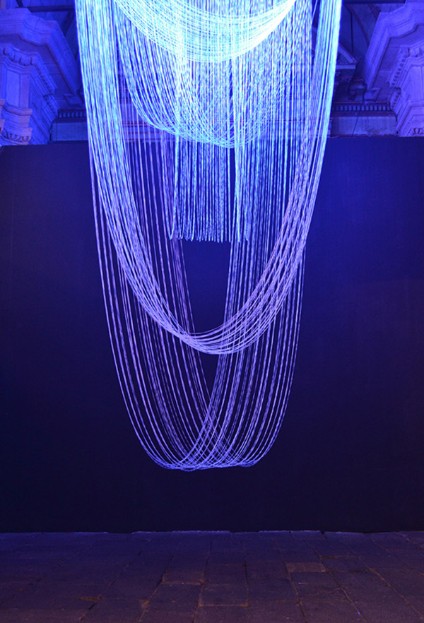 为大家介绍1980年出生的女性艺术家Sara Coleman两个最新展览“磁翻转”与“双同步”。拥有自己服装品牌公司的Sara Coleman创作的纺织雕塑品以成股的丝线为骨架,勾勒出轻盈曼妙的立体身姿,再与光影结合散发出不同的光泽度,随着观赏角度的不同展现出多变的魅影。