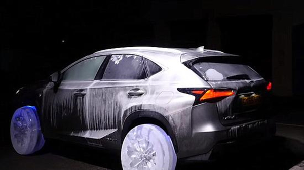 据悉,这个团队用了3个月的时间进行设计、研究以及测试。首先,雕刻家们对雷克萨斯NX真车的零部件进行激光扫描,然后复制其轮胎,包括轮胎上的花纹等细节。每个冰冻车轮都花费4名雕刻家36个小时的工作,车轮上还装有LED灯,以便让汽车看起来更酷。