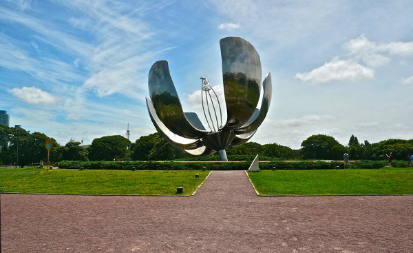 阿根廷钢花高23米,重达18吨。坐落于一个映景明湖的中央,并且倾斜成一定的角度。该不锈钢雕塑由阿根廷建筑家爱德华多卡塔兰诺设计,他为麻省理工学院知名教授。它建造于洛克希德飞机工厂。这座雕塑了不起的地方在于,它在阳光的照射下会打开,没有阳光的时候会闭合。这些巨大的花瓣每瓣重达一千公斤,由马达强劲的汽车搬运。