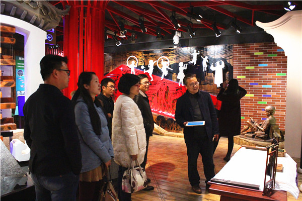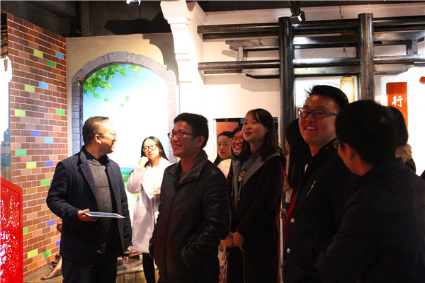 会议结束后,公司员工陪同两校领导参观公司展厅。廖总经理向两校领导一一介绍展厅板块,不但重点讲解了校园文化板块的设计理念,还邀请大家一起参与猜题——根据校园文化浮雕墙的图案猜历史故事与人物。在得知墙角由38根钢柱组成的矩阵能在正面角度看到拼接而成的雷锋头像时,大家无一不为这巧妙的设计拍手叫绝。