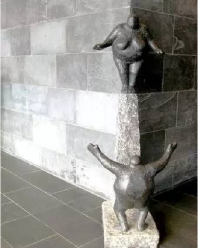 丹麦雕塑家Keld moseholms以青铜、石材雕塑为主要材料,以古怪的人物和故事为主题,创造了一系列具有鲜明特色的作品,雕塑中的人物通常没有具体的特征,黑乎乎的“胖子”有着不一样的形态,做着不同的事情,每一个作品都想演绎着一个故事,颇有深意。Keld moseholms早在国际上就有了很高的知名度,同时也参与过各大国际雕塑及公共艺术活动,比如澳大利亚的“sculpture by the sea”等,很多作品也都被世界各地收藏或永久存放。