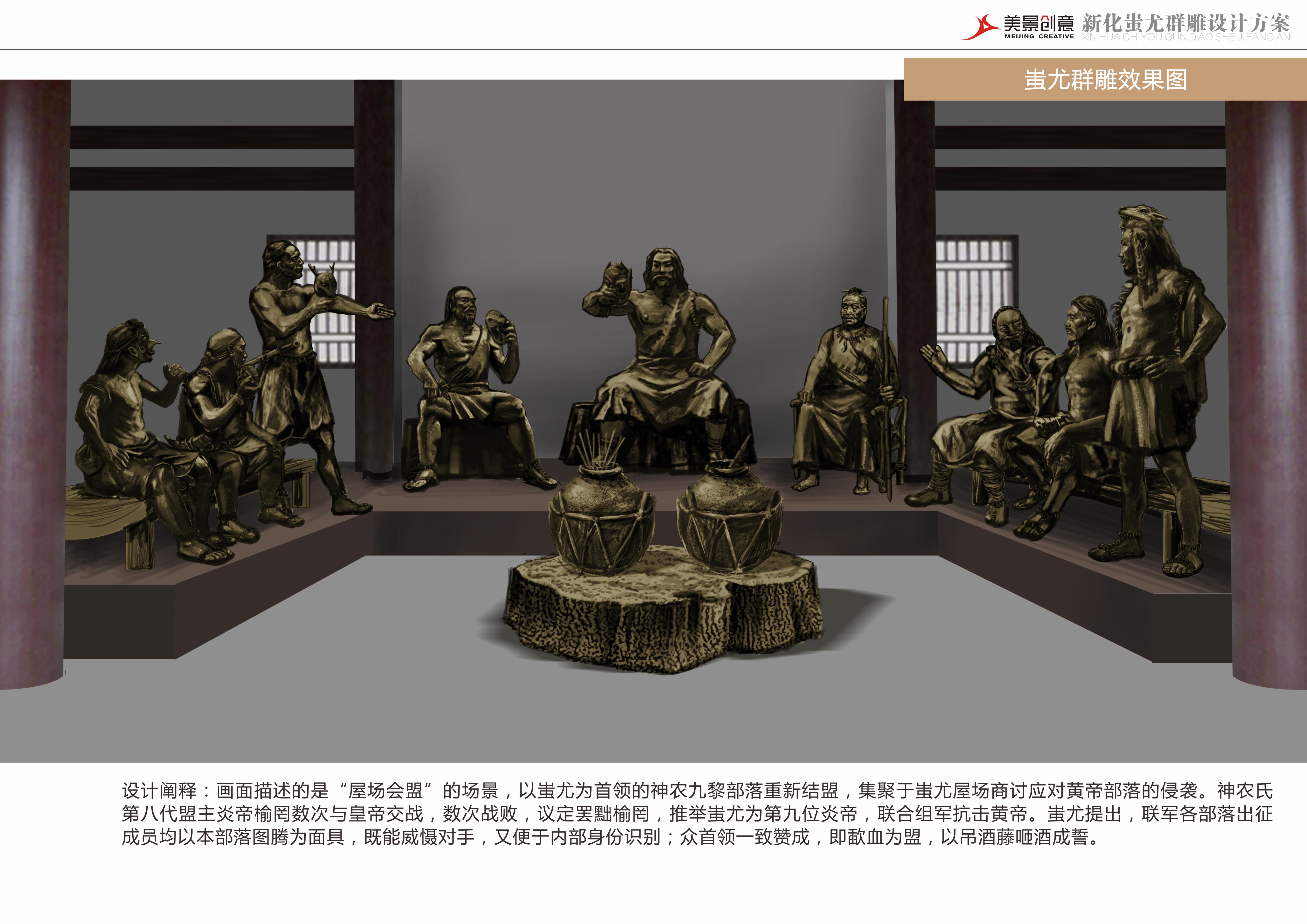 美景创意案例:斗酒兮逐鹿天下——蚩尤“屋场会盟”群雕