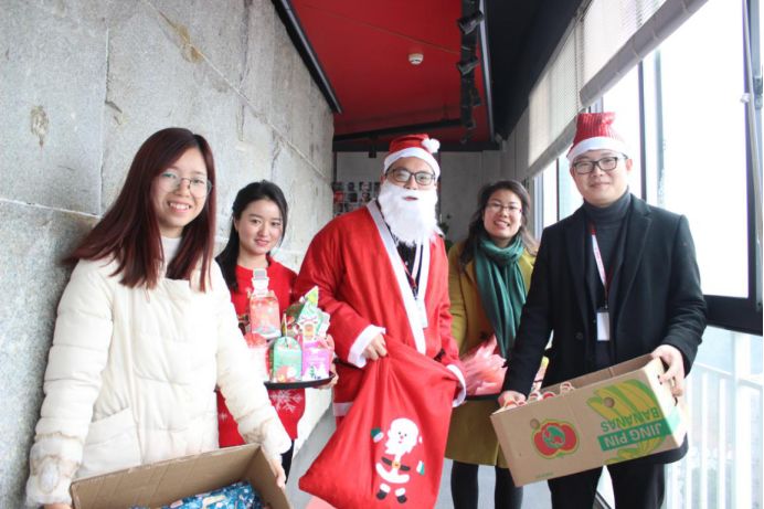 圣诞老人一边送出糖果和礼物,一边祝福大家圣诞快乐。因为白胡须太过厚重,夏董走在无人处小小吐槽:“哎呀,原来扮演圣诞老人真不容易啊,但为了大家开心,还是值的。”话语刚落,圣诞老人的助手们都笑了起来。