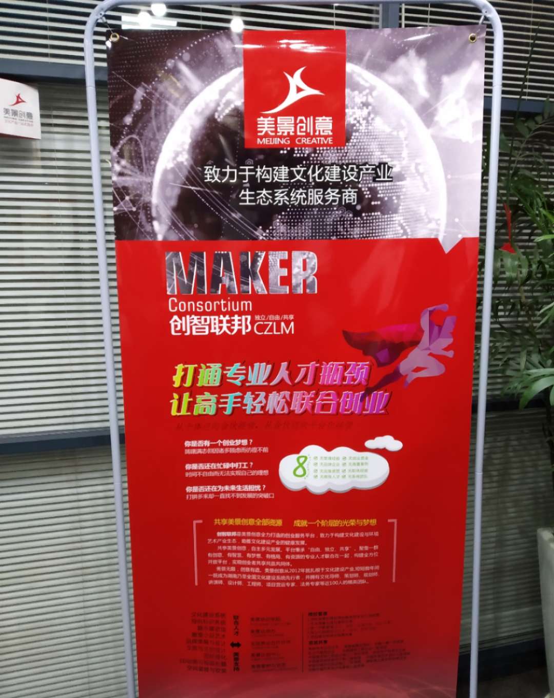 创智联邦是美景创意全力打造的创业服务平台,致力于构建文化建设与环境艺术产业生态,助推文化建设产业的健康发展。平台秉承“自由、独立、共享”的精神,聚集一群有创意、有智慧、有梦想、有格局、有资源的专业人才,打造产业高度集聚的专业平台品牌,加速市场资源整合与高效利用,精准连接市场与需求,成为推动产业转型升级和行业变革的强劲引擎。