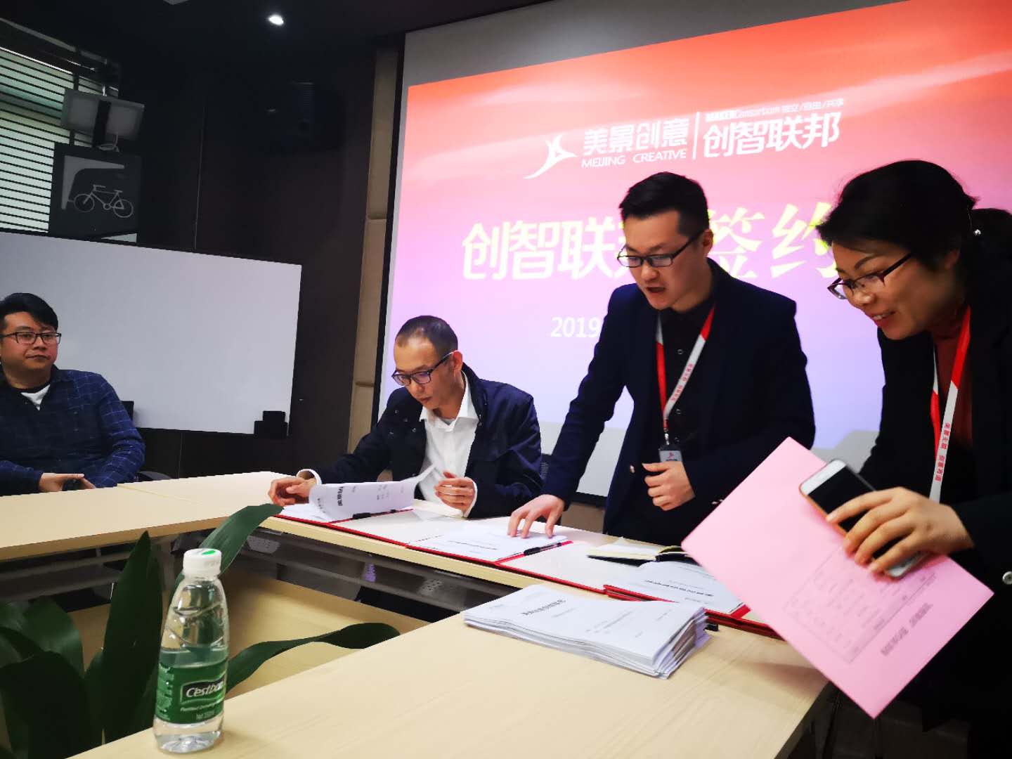 共享美景创意,共创美好未来!3月29日美景创意旗下创智联邦平台举办第一次签约大会。会上,首批签约的四位创客分别与我司副总经理夏令令先生进行签约,同时还有其他业界精英代表与我司管理层共同见证这一盛事。