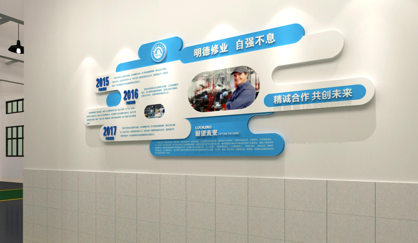 美景创意确定以“明德修业·自强不息”为文化主题,衍生校园文化建设的相关设计。