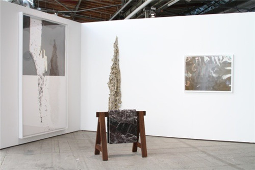 今年,总共有111家画廊聚集在柏林艺术展的大本营——柏林火车站(the Station Berlin)中,三个大厅内共展出了115位艺术家的作品。比起去年的121位艺术家和133家画廊,今年的展览规模明显缩小(现在,几家画廊合租一个展位是大趋势)。艺术作品之间的空间增加了,但很多作品的规格也比以前大了许多,有几个装置艺术品尤其巨大,包括捷克艺术家克里斯托弗·金德拉(Kristof Kintera)、德国艺术家卡斯滕·弗丁达(Karsten Födinger)、希腊艺术家由果斯·萨彭斯(Yorgos Sapountzis)、丹尼尔·斯蒂曼·马格内蒂(Daniel Steegmann Mangrané)、朱利安·歌德(Julian Göthe)和克里姆·塞勒(Kerim Seiler)的作品等等。这些大型作品使柏林艺术展更像巴塞尔艺术展,后者专为大型作品设置了一个“无限”展区。以前,两个艺术展也经常被用来相互比较。