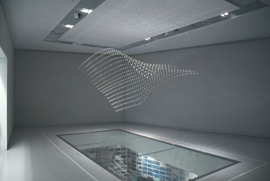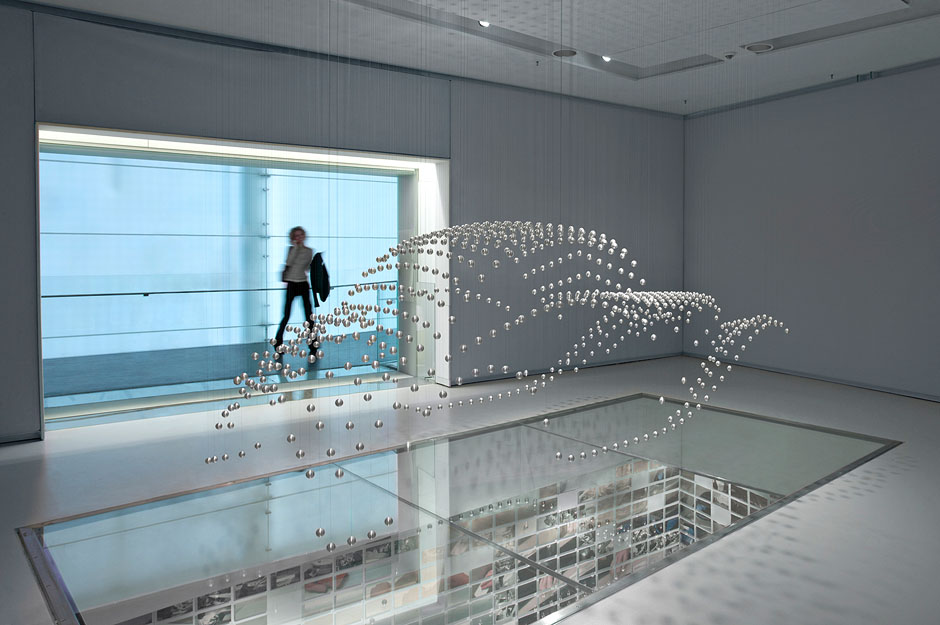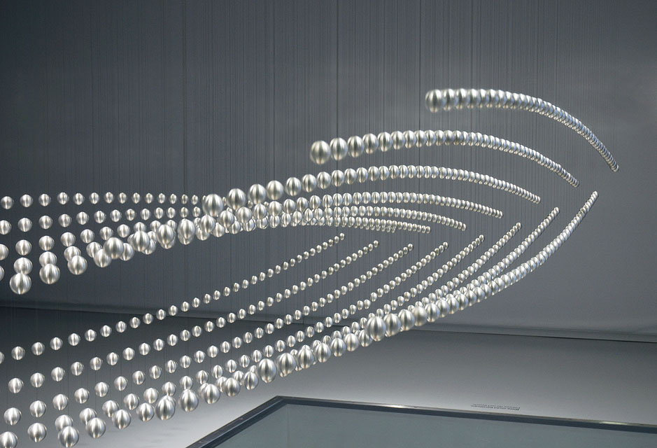 慕尼黑宝马博物馆展示的动感雕塑由ARTCOM创作,714个金属球采用超细薄的钢丝线连在一起电机控制着,整个雕塑覆盖六平方米面积,机电一体化动画七分钟长时。在开始时移动混乱,然后几个不同形式演变,最终演变成品物件。